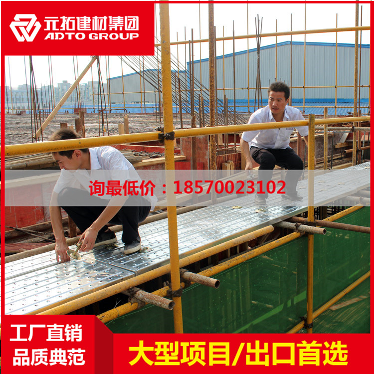 發(fā)布時(shí)間:2017-07-31 瀏覽量:2684近幾年,鋼踏板市場(chǎng)非常好,很多的工程項(xiàng)目都換掉了以前的竹木跳板,鋼網(wǎng)跳板也不再受歡迎。市場(chǎng)需求導(dǎo)致國(guó)內(nèi)廠家遍地開(kāi)花,小作坊居多,質(zhì)量不可靠。這里主要介紹一個(gè)腳手架鋼踏板第一制造商——元拓集團(tuán)! 元拓鋼踏板產(chǎn)品詳細(xì)描述: 1.有沖孔的鋼跳板耐用,減重…