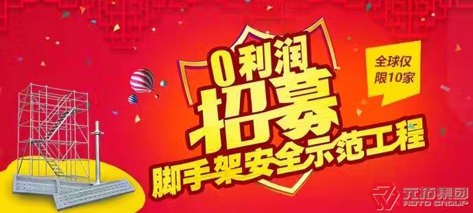 為迎接元拓成立20周年,元拓首屆“腳手架安全示范工程”施工企業(yè)招募活動正式啟動,現(xiàn)向全球征集10家具有壹級(含)以上施工資質(zhì)的施工單位,打造“零利潤,腳手架安全示范工程“,申報成功的施工單位將免費獲贈價值10萬元的工程物資產(chǎn)品!申報電話:400-1090-877。詳情請戳http://m.adtomall.cn/SpecialList/201703/index.html